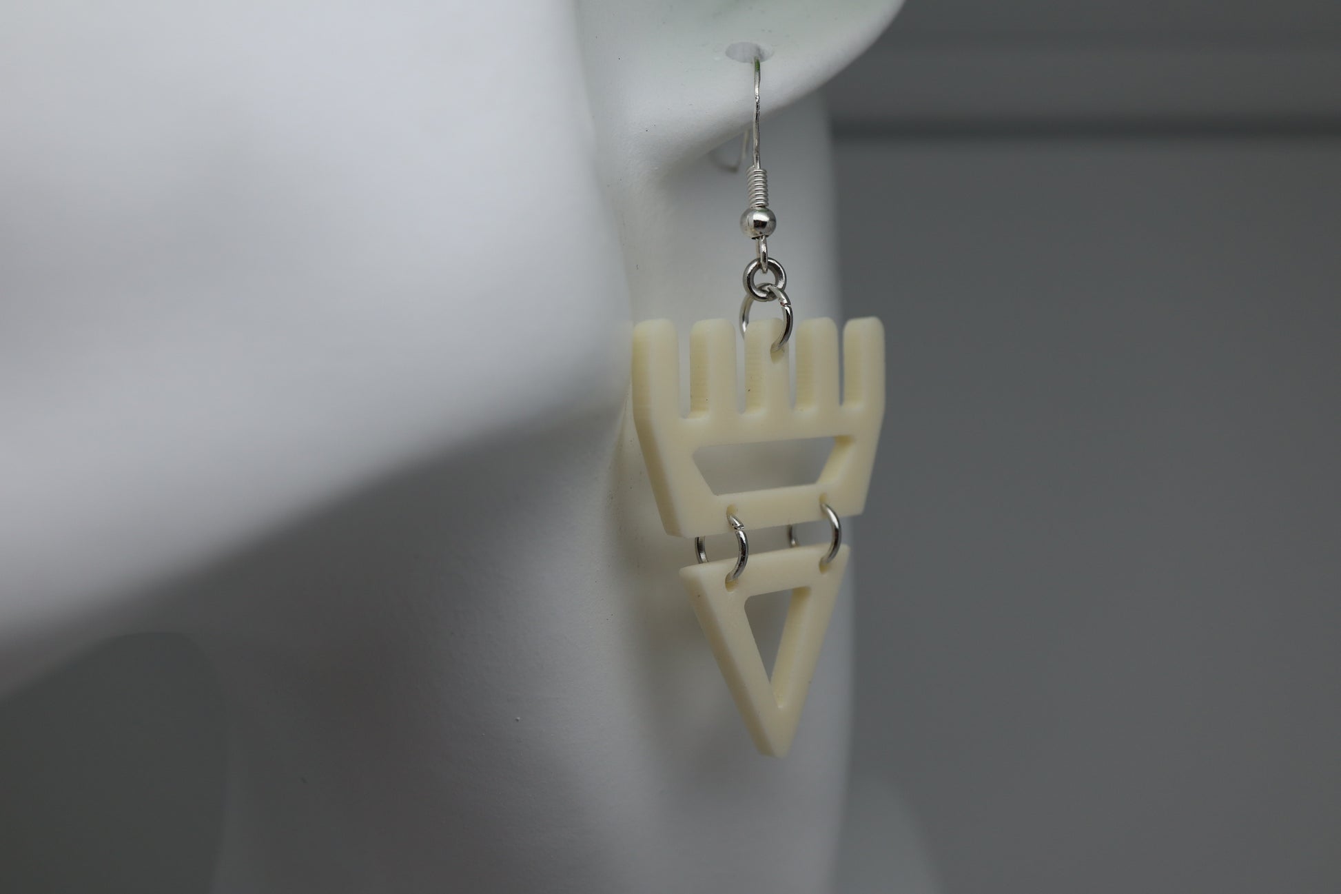 Crafted with bone white acrylic and laser-cut with precision, these earrings combine traditional meaning with modern craftsmanship. The articulated two-piece design adds movement, honoring the living energy of the symbols that inspired them.