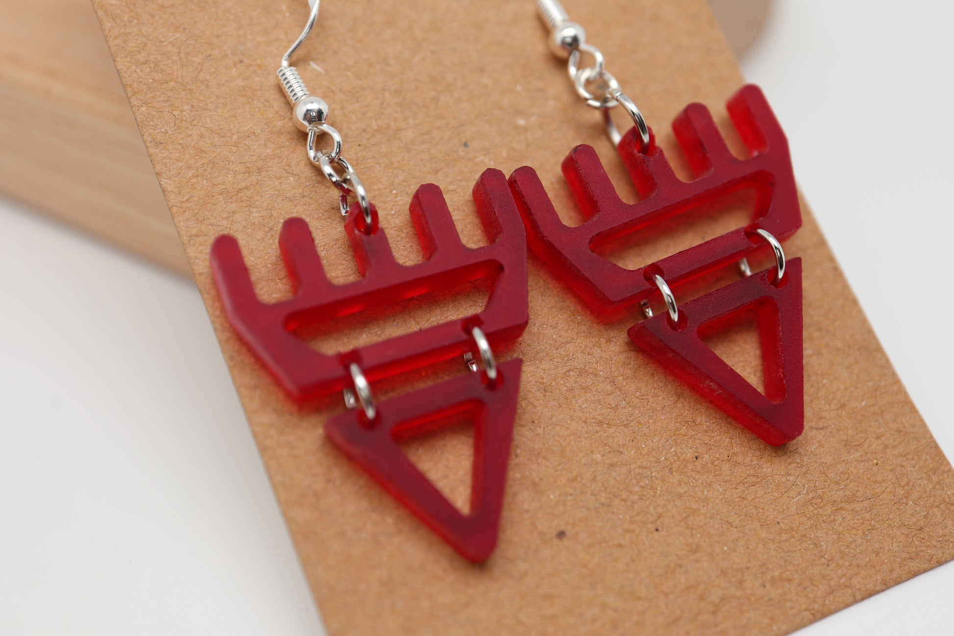 Crafted with Frosted Red Translucent acrylic laser-cut with precision, these earrings combine traditional meaning with modern craftsmanship. The articulated two-piece design adds movement, honoring the living energy of the symbols that inspired them.