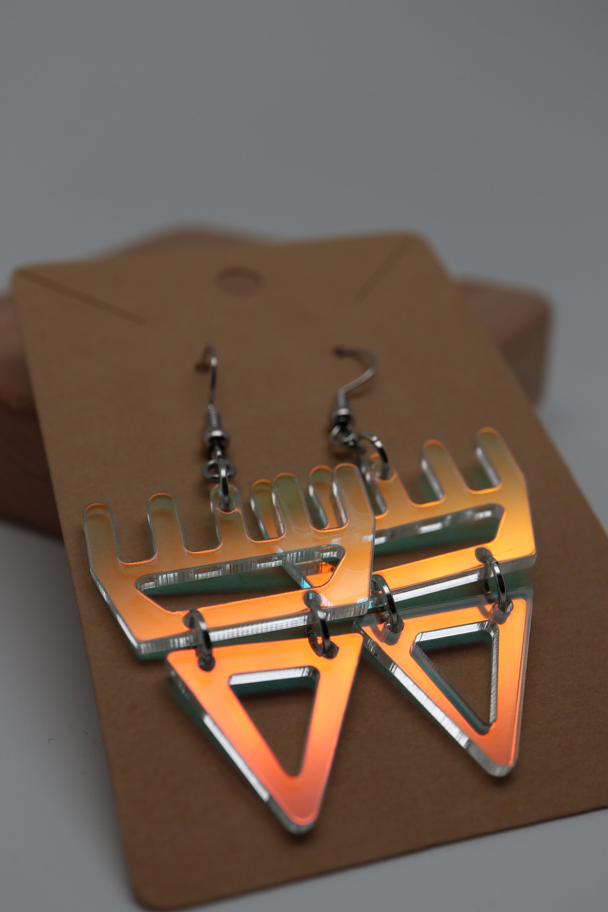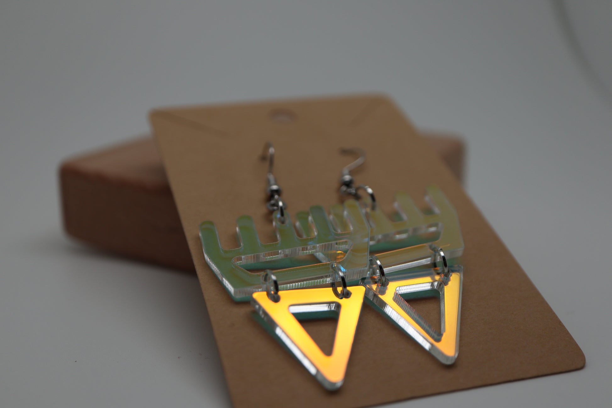 Crafted with Iridescent Shimmer translucent acrylic laser-cut with precision, these earrings combine traditional meaning with modern craftsmanship. The articulated two-piece design adds movement, honoring the living energy of the symbols that inspired them.