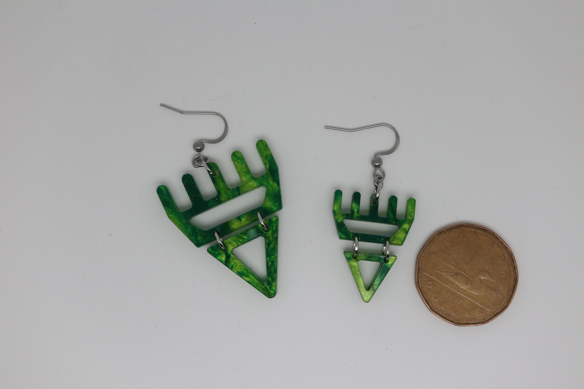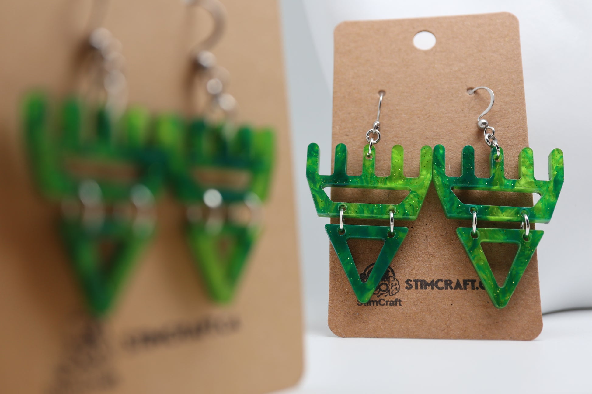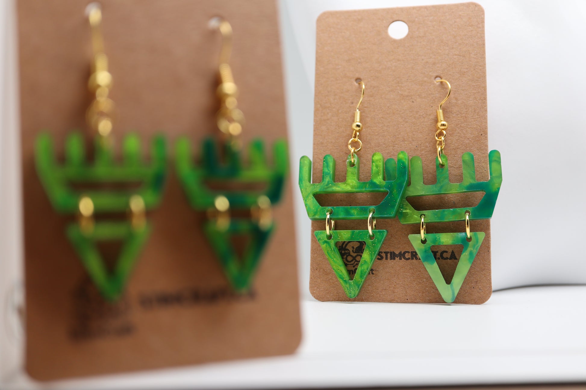 Crafted with Marble Moss acrylic, laser-cut with precision, these earrings combine traditional meaning with modern craftsmanship. The articulated two-piece design adds movement, honoring the living energy of the symbols that inspired them.