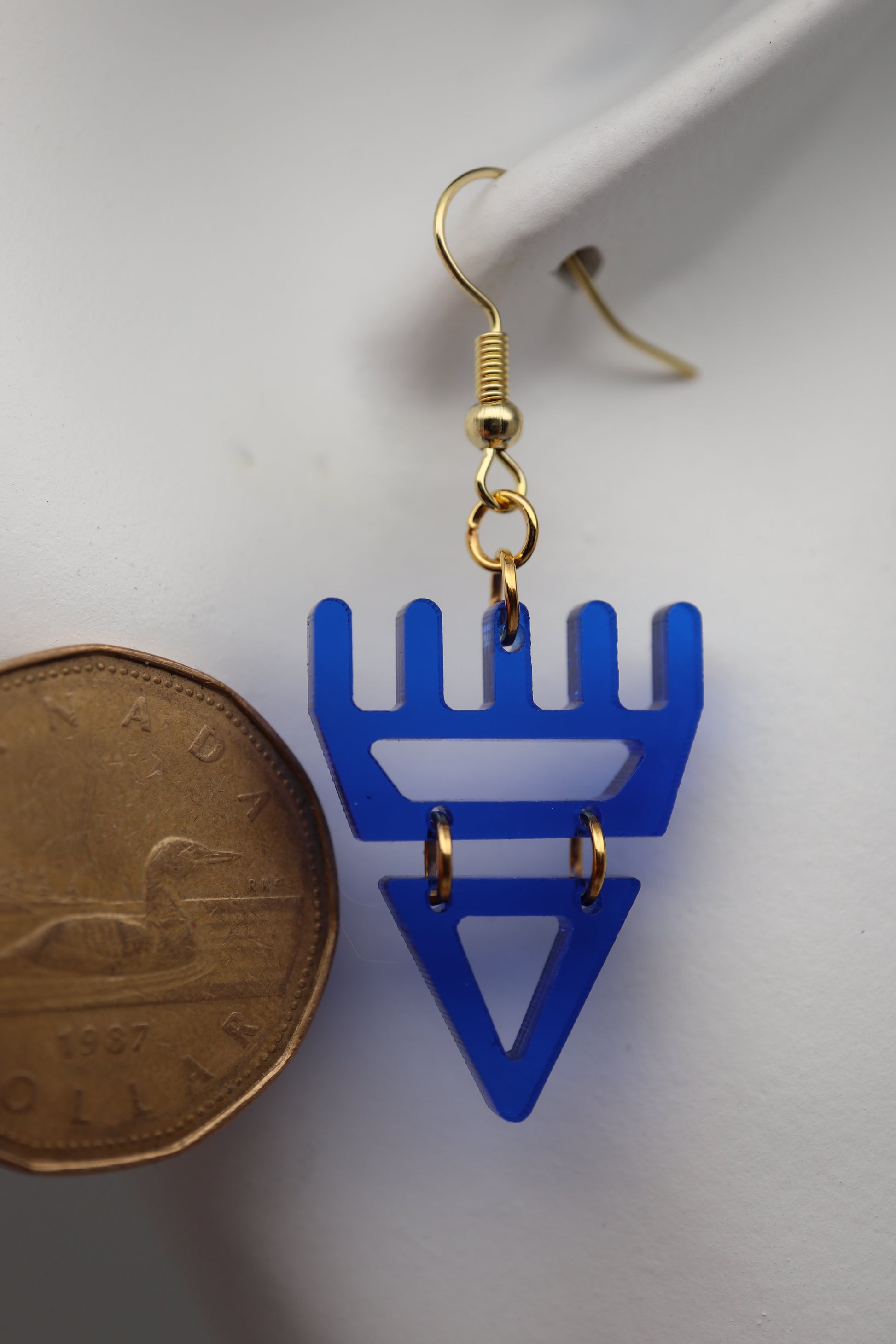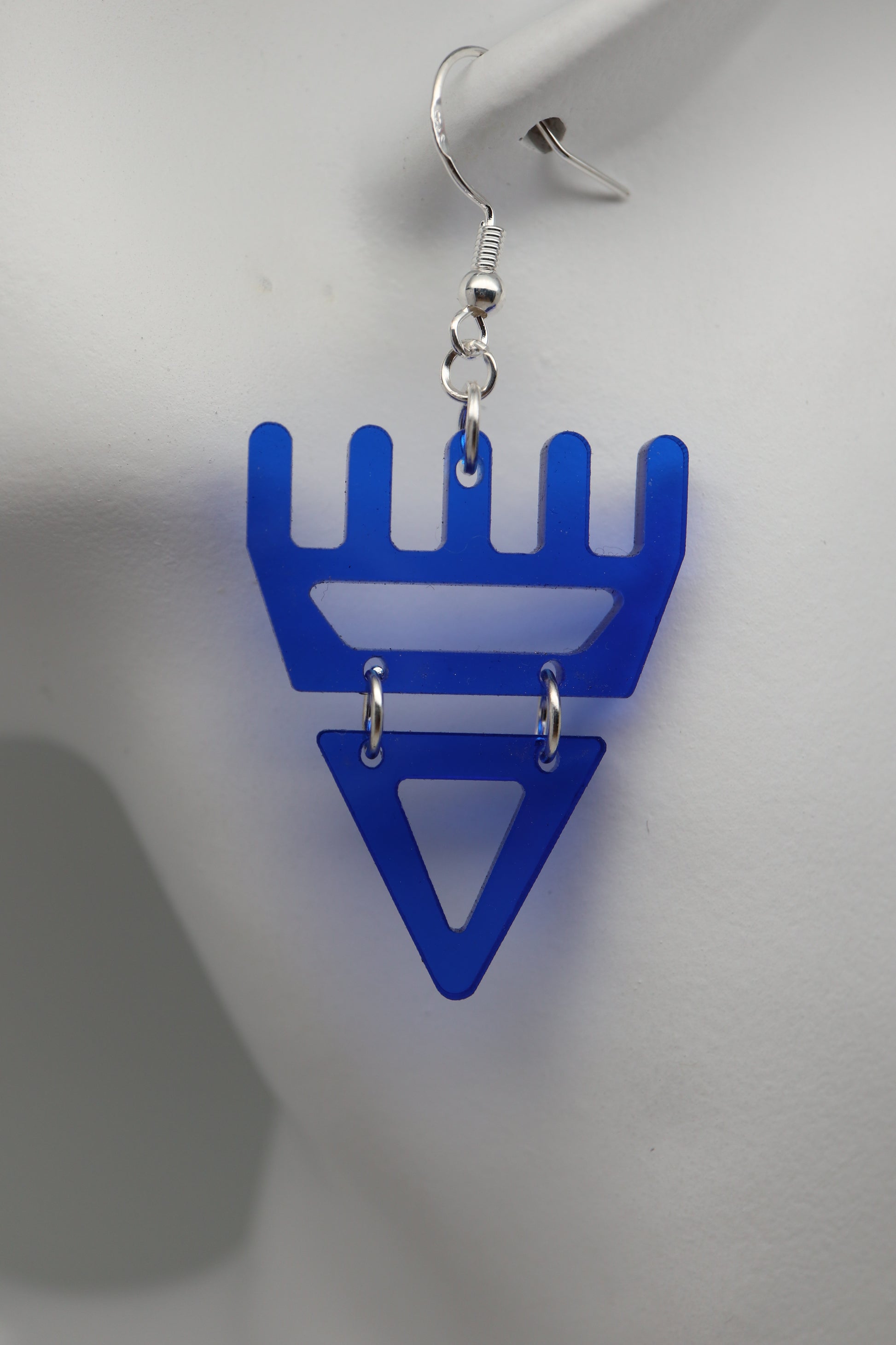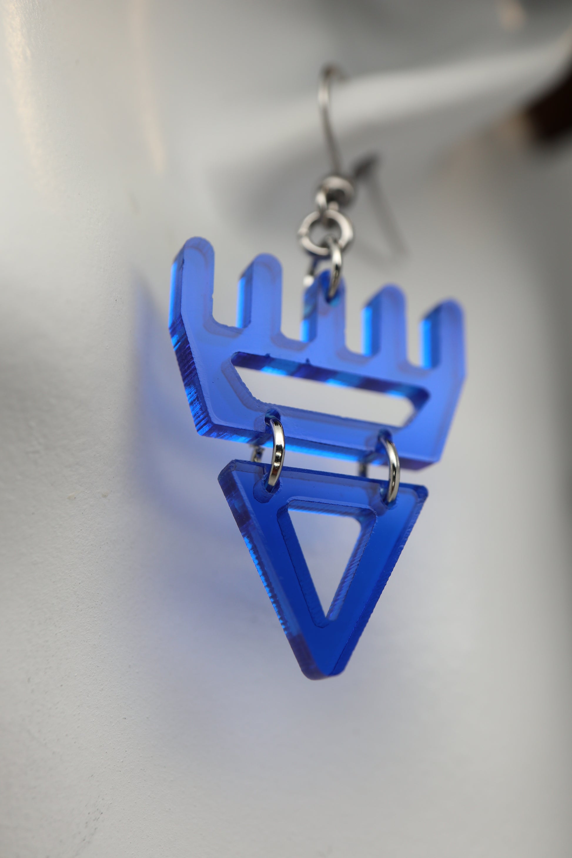 Crafted with Sapphire Blue Translucent acrylic laser-cut with precision, these earrings combine traditional meaning with modern craftsmanship. The articulated two-piece design adds movement, honoring the living energy of the symbols that inspired them.