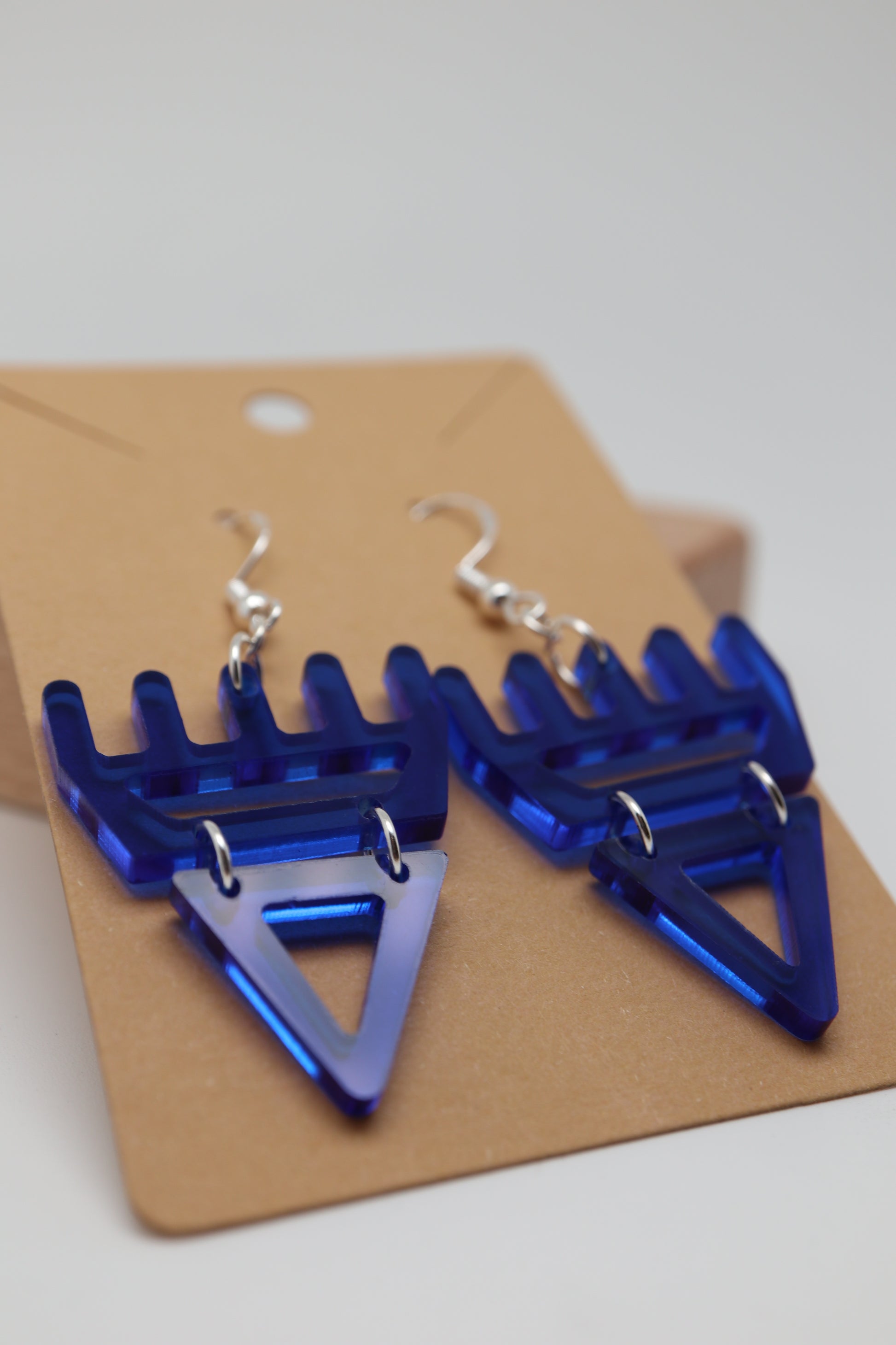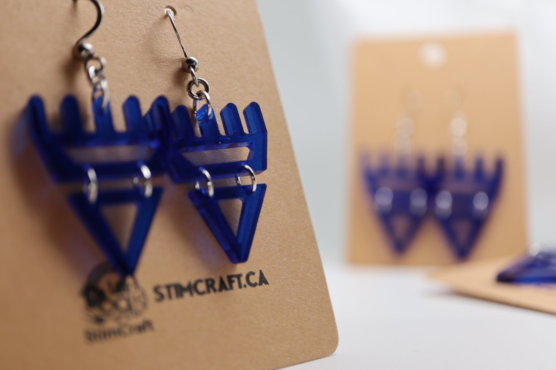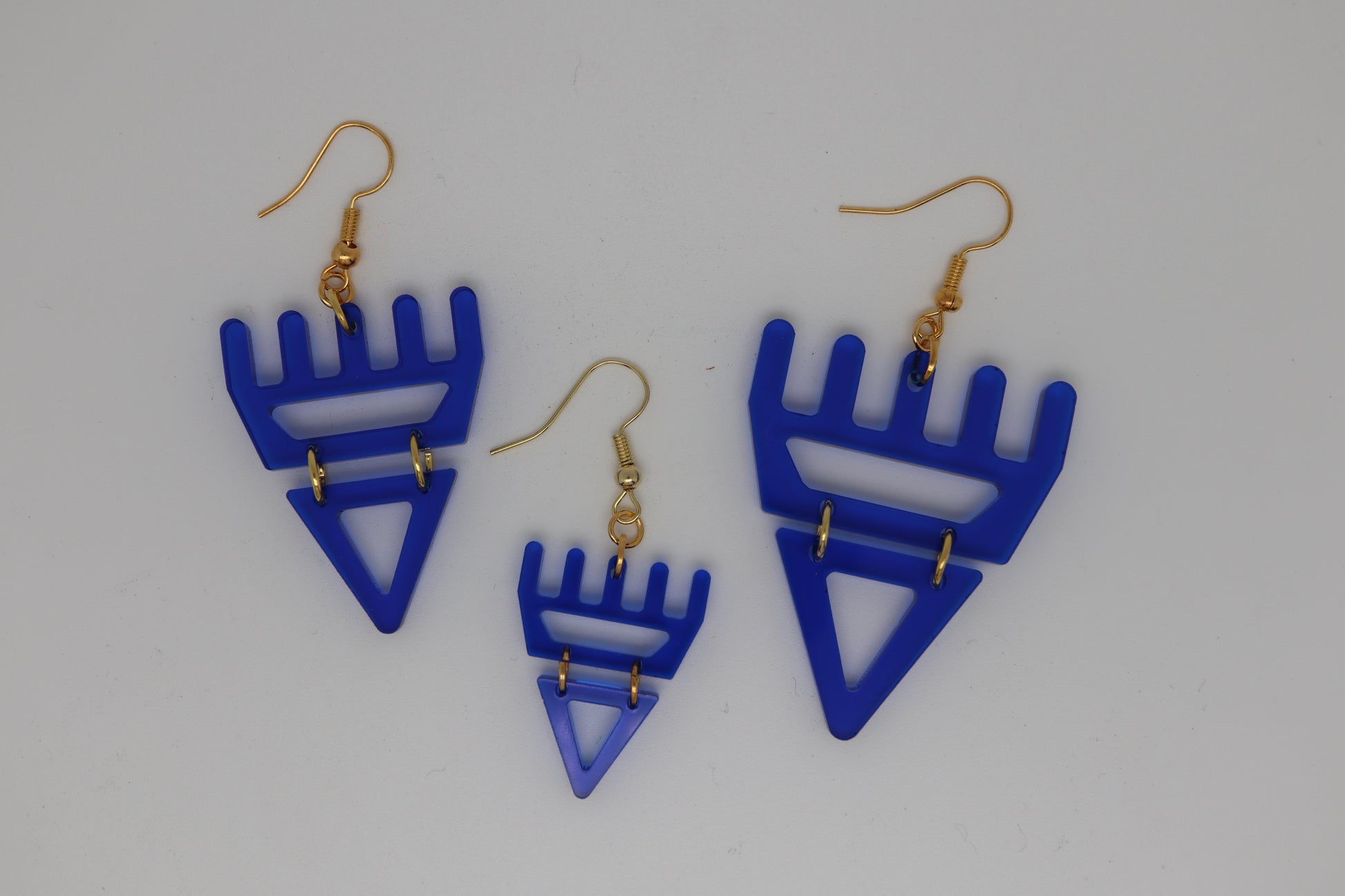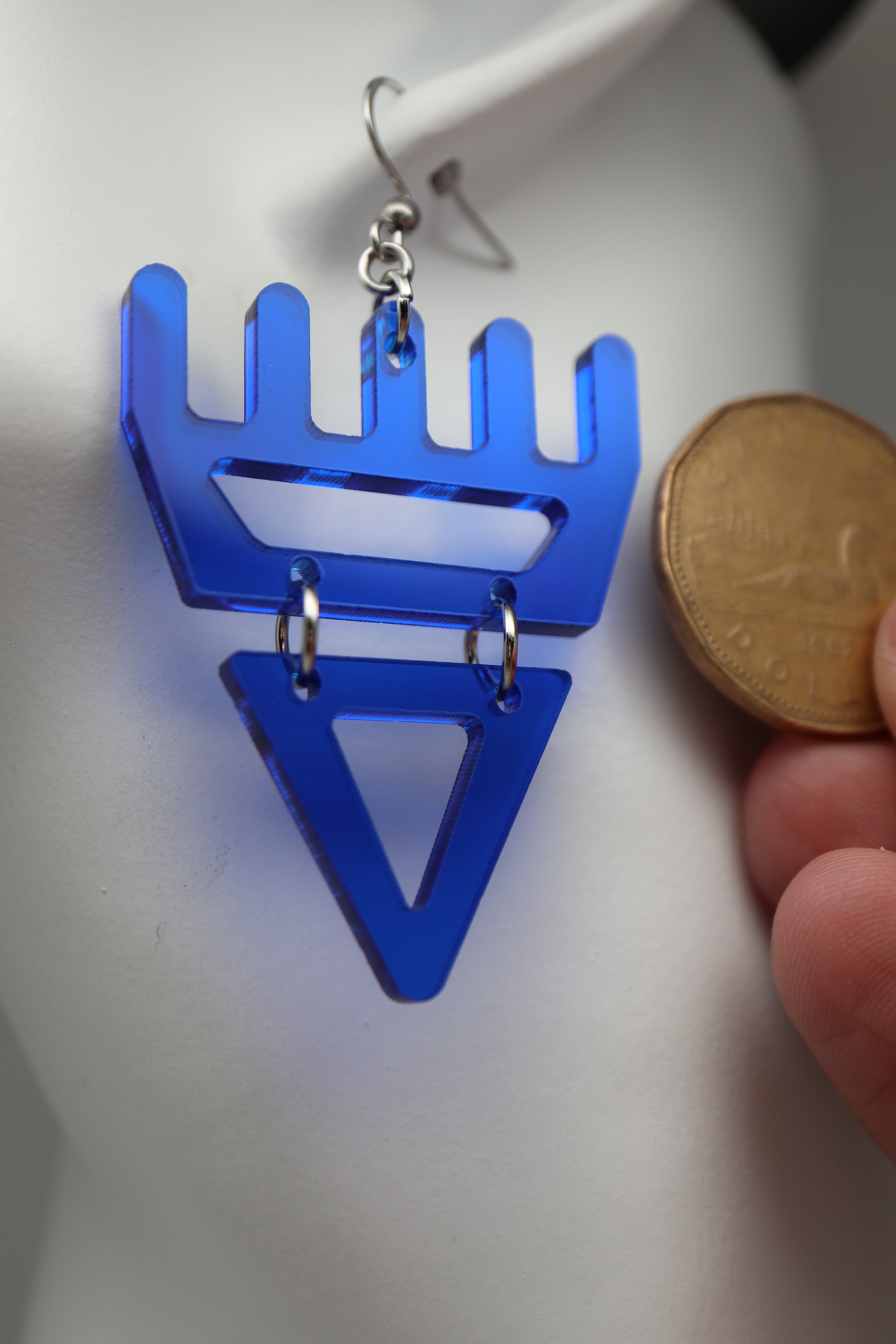 Crafted with Sapphire Blue Translucent acrylic laser-cut with precision, these earrings combine traditional meaning with modern craftsmanship. The articulated two-piece design adds movement, honoring the living energy of the symbols that inspired them.
