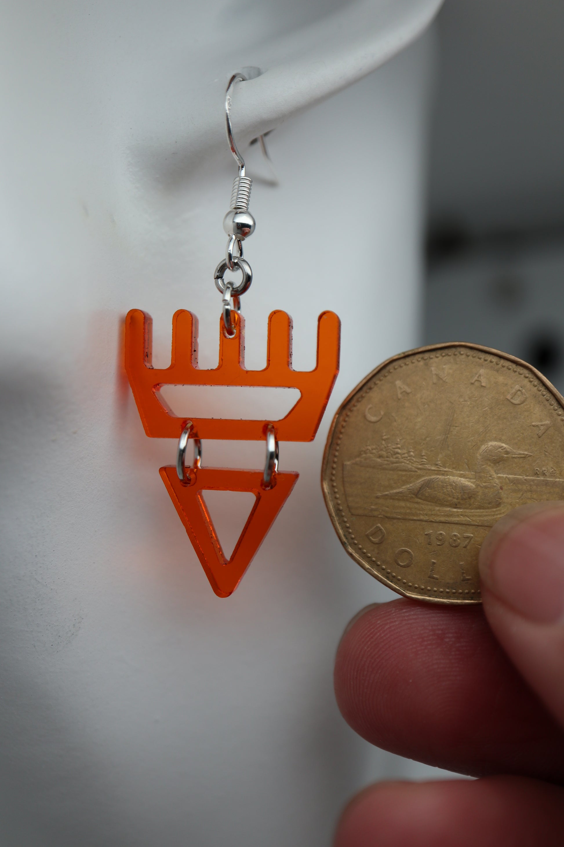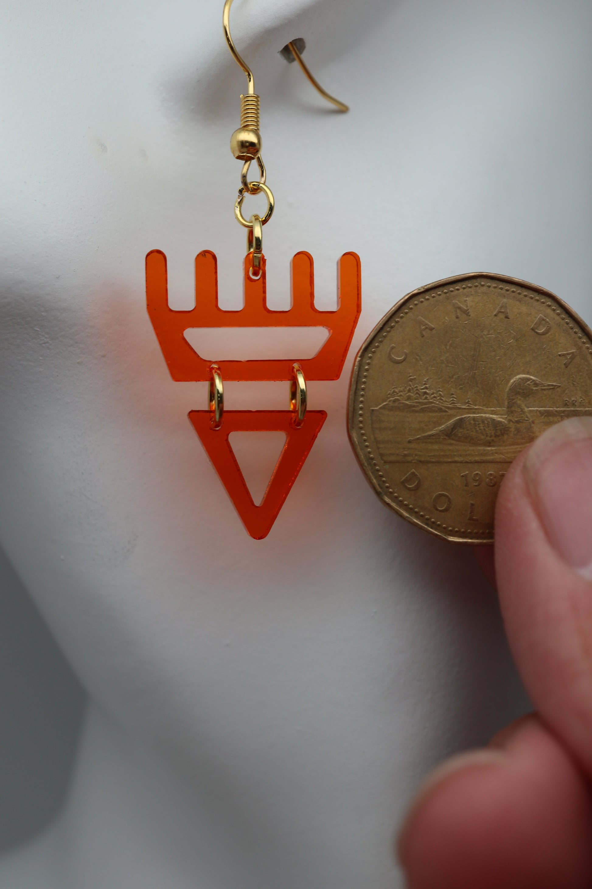 Crafted with Pumpkin Orange acrylic laser-cut with precision, these earrings combine traditional meaning with modern craftsmanship. The articulated two-piece design adds movement, honoring the living energy of the symbols that inspired them.